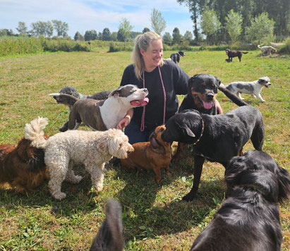 Van jongs af aan ben ik gek op dieren, en dan voornamelijk honden. Thuis hadden we helaas geen hond dus liep ik bij ons in de wijk rond om de buurhonden uit te laten. Ik wist dus ook al heel snel dat ik met honden wilde gaan werken. Ik heb een MBO studie dierenverzorging gedaan aan De Groene Campus in Helmond. En heb hier dan ook een mooi diploma behaald. Hierna heb ik 2 jaar in een hondenkennel gewerkt. Waar ik de honden trainde en verzorgde. Daarna ben ik met veel plezier bij een supermarkt gaan werken. Maar ik miste toch echt het werken met honden. Daarom heb ik in 2016 besloten een hondenuitlaatservice te beginnen naast de baan in de supermarkt. Sinds 2018 heb ik mijn baan bij de supermarkt opgezegd en ben ik fulltime begonnen met de uitlaatservice. Dit wilde ik wel goed en professioneel doen, dus besloot ik me in te schrijven voor de opleiding 'Gediplomeerde hondenuitlaatservice' aan de Martin Gaus Academie te Lelystad. Hier heb ik de volgende modules gevolgd;